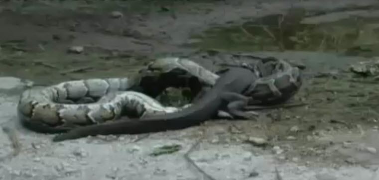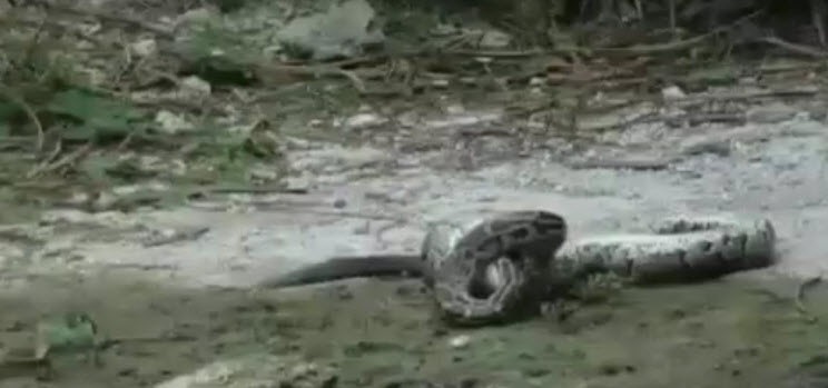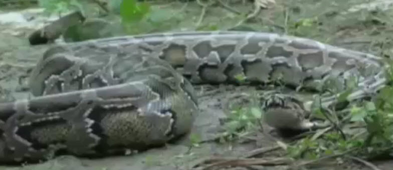 Dev piton timsahı yutmaya kalkıştı!