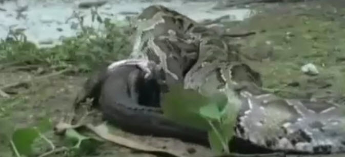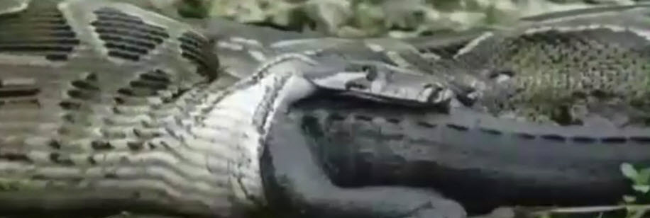 Vahşi doğada yırtıcı hayvanların ölümüne karşılaşması görenleri şaşkına çeviriyor. Dev pitonun yeni avı 2 metrelik timsahtı. Görüntülerin nerede kaydedildiği bilinmiyor. Dev piton karaya çıkan timsahı gözüne kestirdi. Dakikalarca verilen amansız mücadeleyi kazanan piton avını yutmaya başladı.... İşte vahşi doğanın gerçek yüzü...