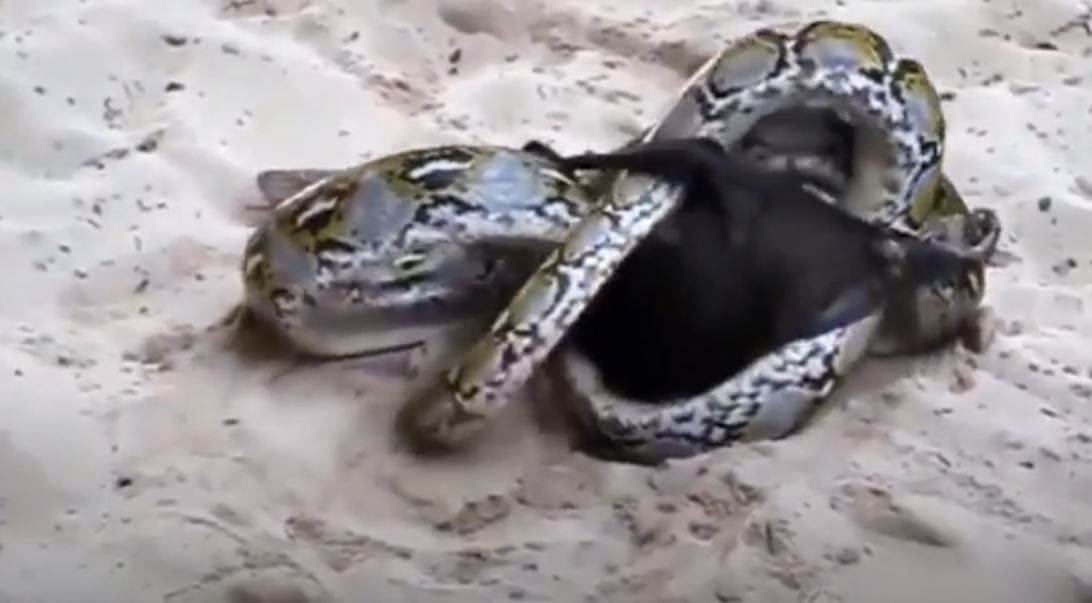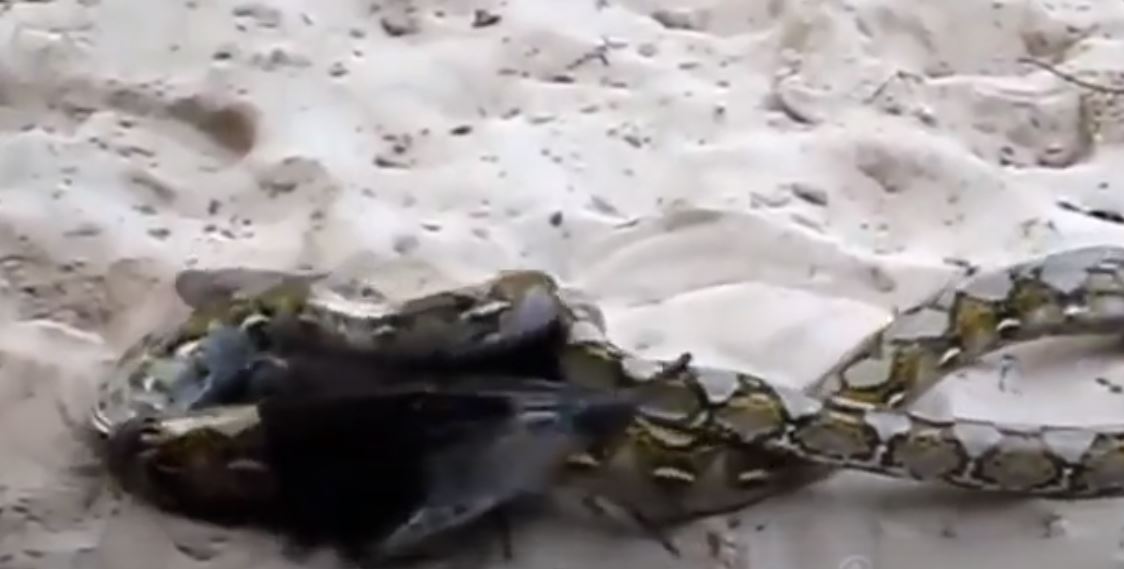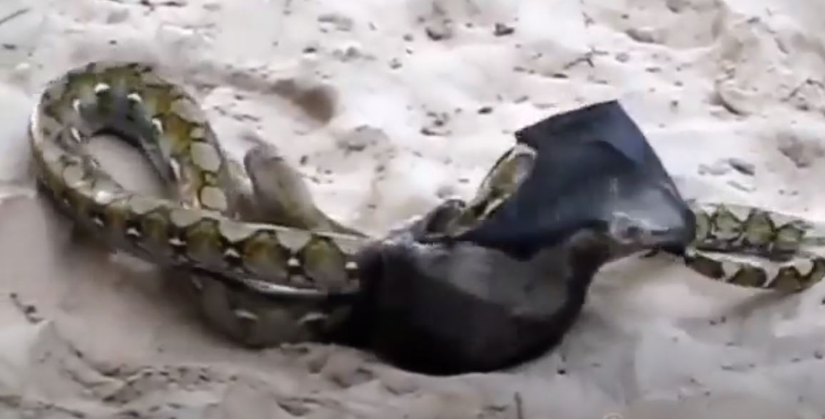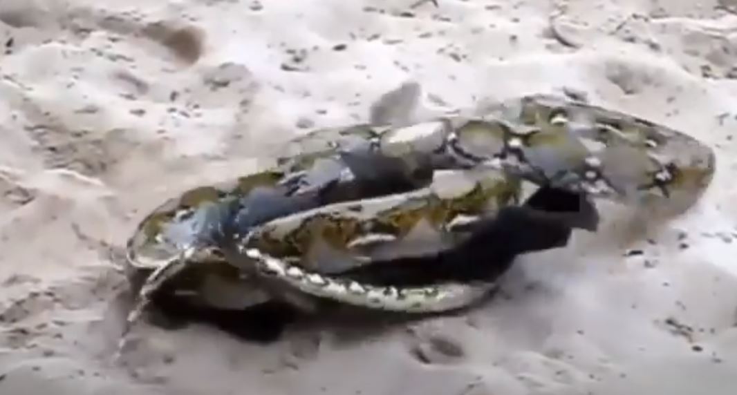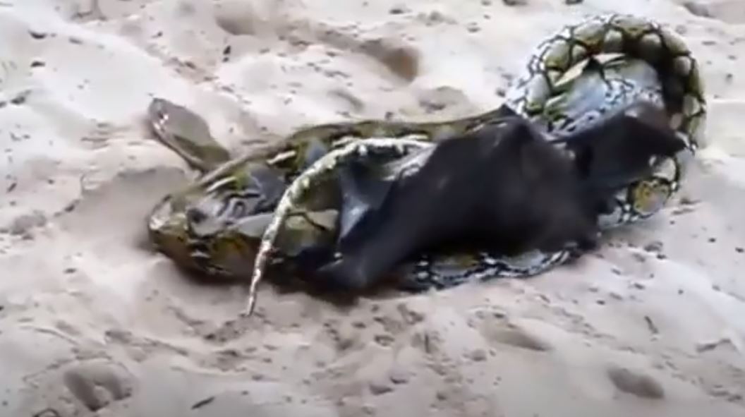Dev piton yılanı öyle bir şey yakaladı ki! Görenler gözlerine inanamadı