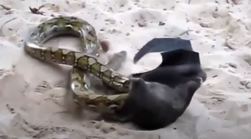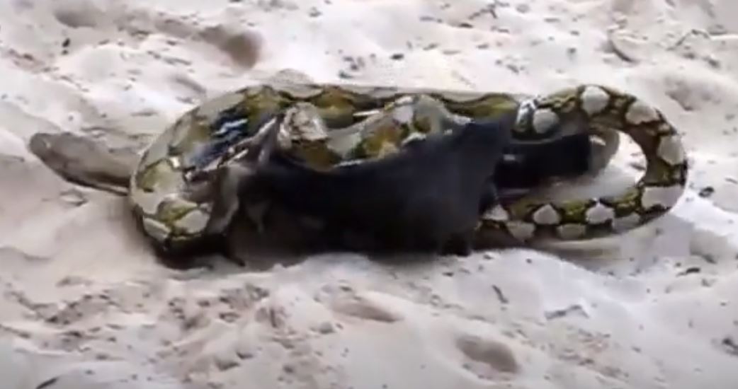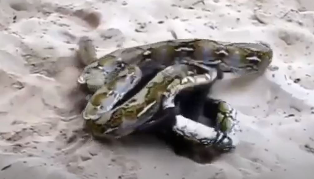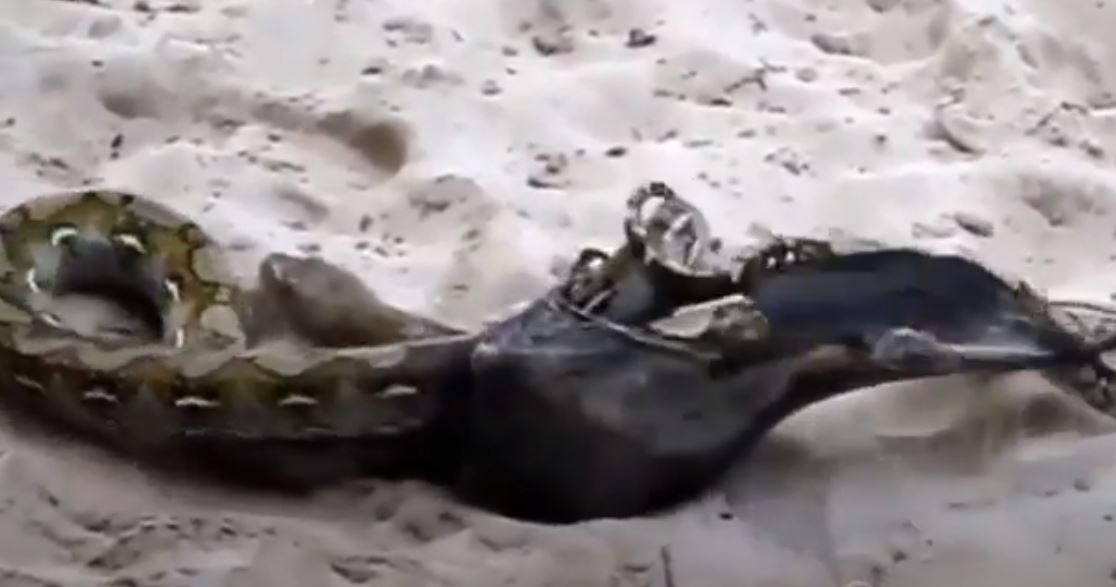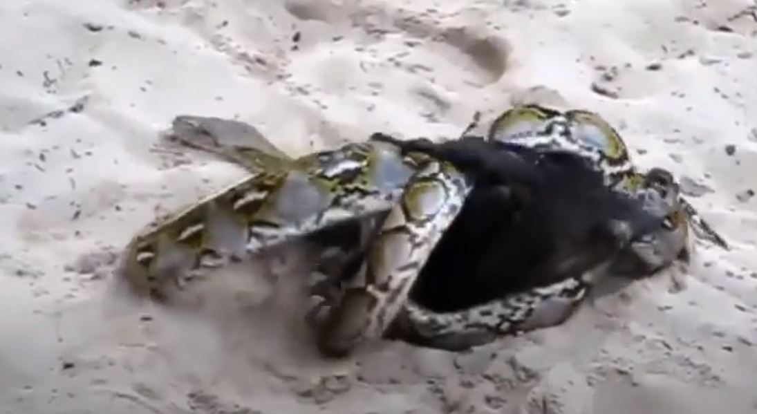 Dev piton yılanı öyle bir şey yakaladı ki! Görenler gözlerine inanamadı