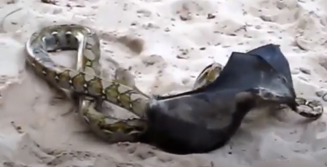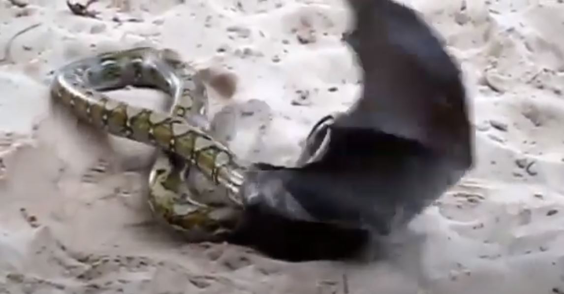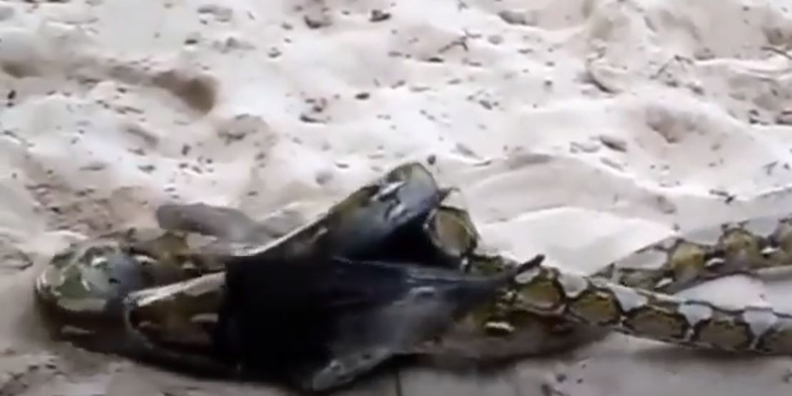 Piton ile yarasanın yaşam savaşı böyle görüntülendi.