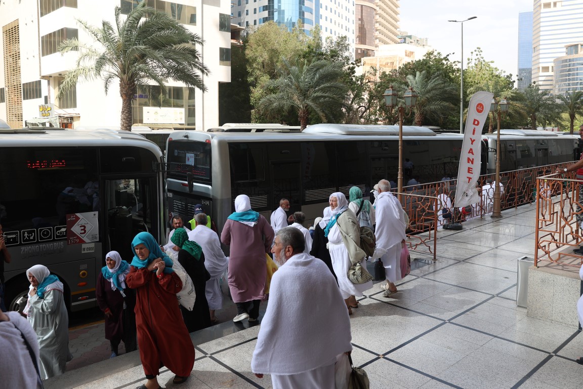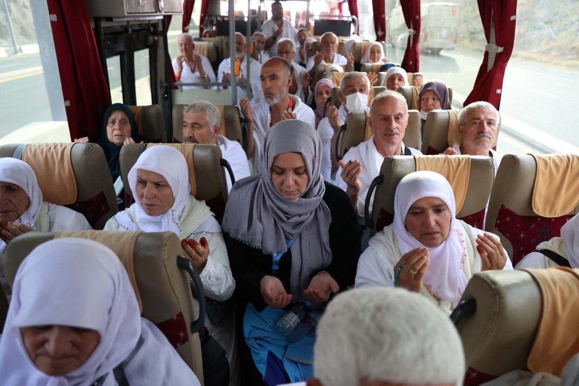 Diyanet İşleri Başkanı Prof. Dr. Ali Erbaş'ın talimatıyla, Mekke'de "2023 Hac Organizasyonu" kapsamında Türk hacı adaylarının Arafat'a intikali başladı.