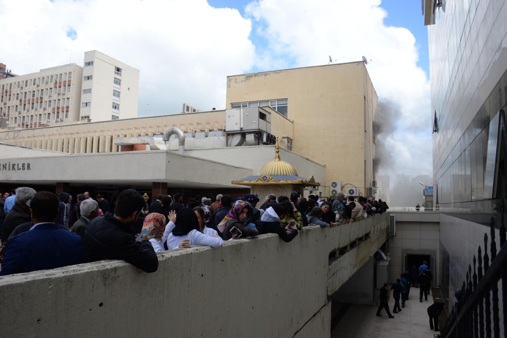 Diyarbakır'da Dicle Üniversitesi Tıp Fakültesi Hastanesi Radyoloji Bölümü'nde yangın çıktı. Yangından sızan dumanlar bir çok servisi kaplarken, hasta ve refakatçileri ise dışarı çıkarıldı.