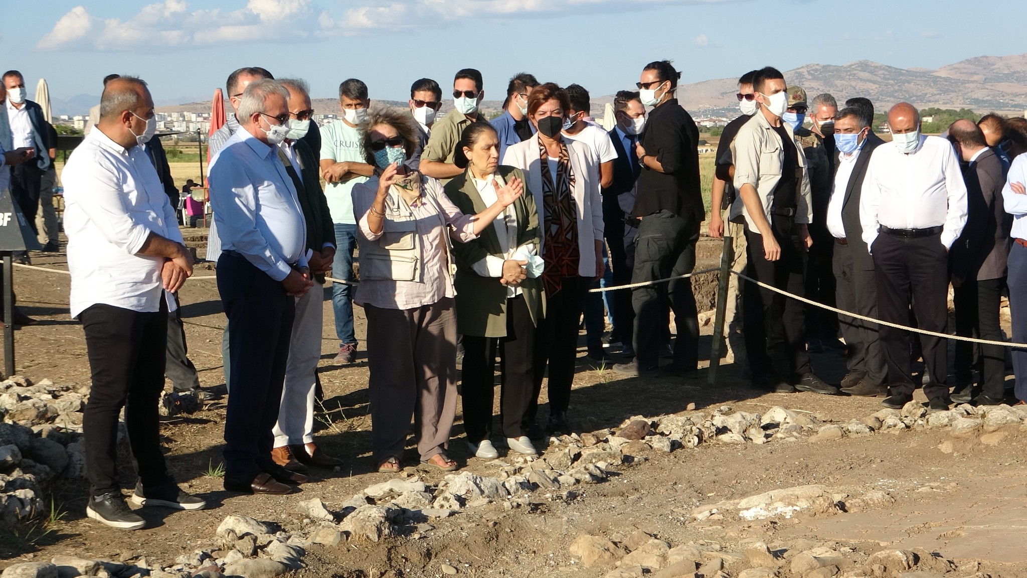 Kazı sahasında incelemede bulunan Diyarbakır Valisi Münir Karaloğlu, AK Parti Diyarbakır milletvekilleri Oya Eronat, Mehmet Mehdi Eker ve Ebubekir Bal, DTSO Başkanı Mehmet Kaya, yeni bulunan sandık tipi mezarda incelemelerde bulunarak, çalışmalar hakkında bilgi aldı.