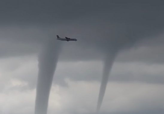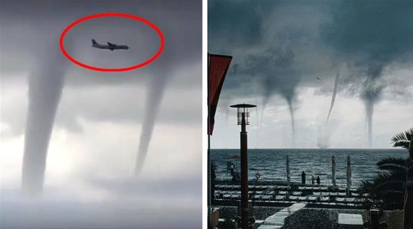 Rusya'nın Sochi havaalanına inmek için alçalan uçak, o sırada fırtınalı havada oluşan üç hortumun yanından zorunlu geçiş yaptı.