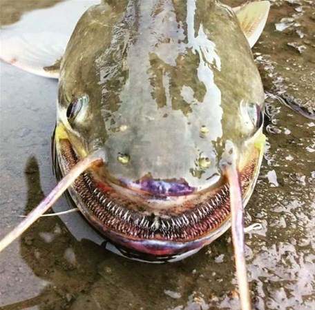 Sıradışı bir yüz ifadesiyle wallago attu kedi balığı