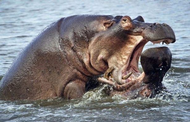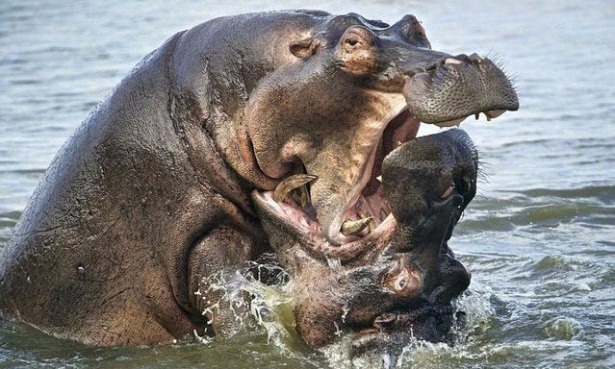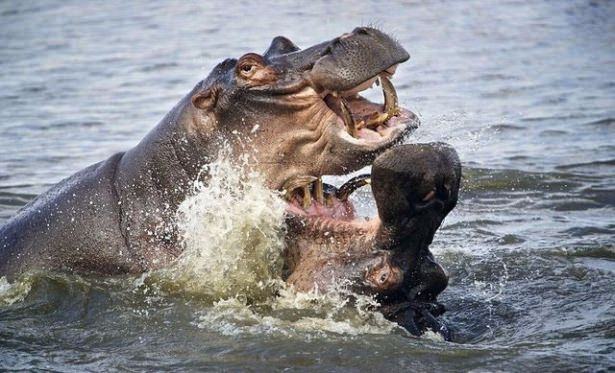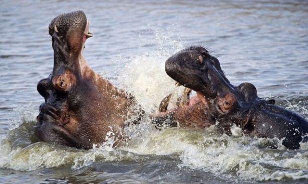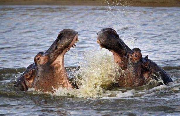 İki su aygırının Güney Afrika'daki Kruger Ulusal Parkı'ndaki kavgası kameralara böyle yakalandı...