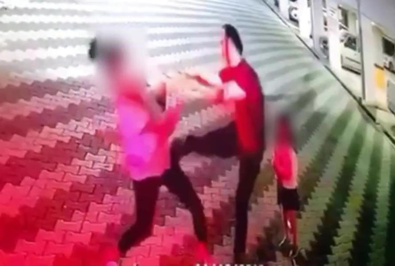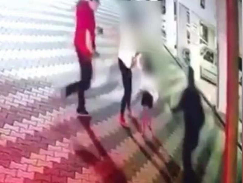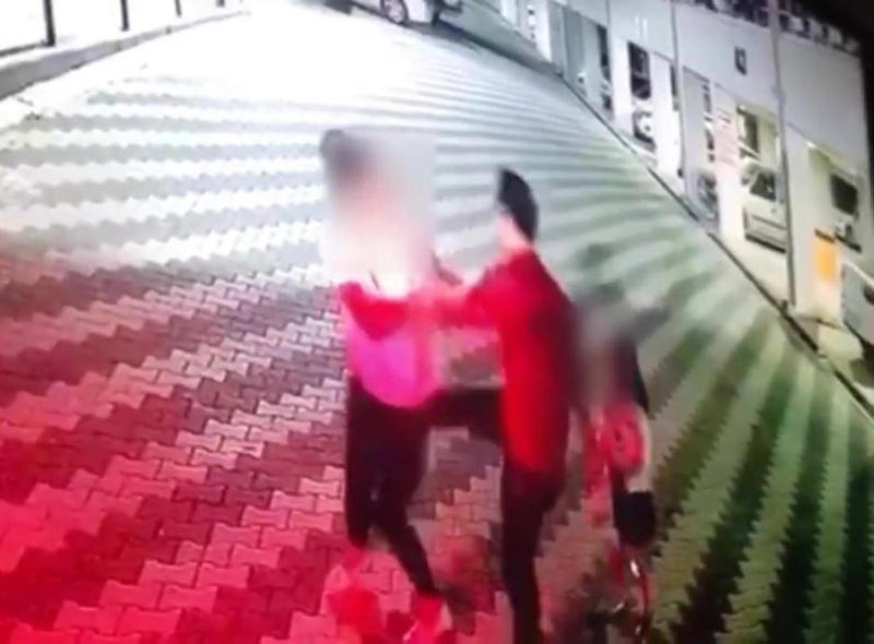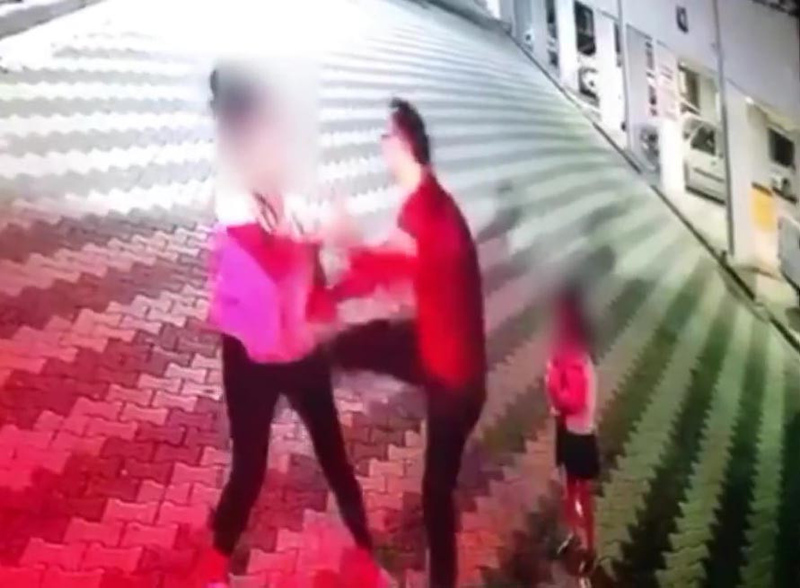 M.M. ile A.G. arasında sitenin bahçesinde bilinmeyen nedenle tartışma çıktı. Tartışmanın büyümesi üzerine M.M., kucağında kızı bulunan A.G.'ye tekme- tokat saldırdı. Bu sırada sitenin güvenlik görevlisi araya girerek M.M.'yi uzaklaştırmaya çalıştı. Yaşanan o anlar ise sitenin güvenlik kameralarına yansıdı.