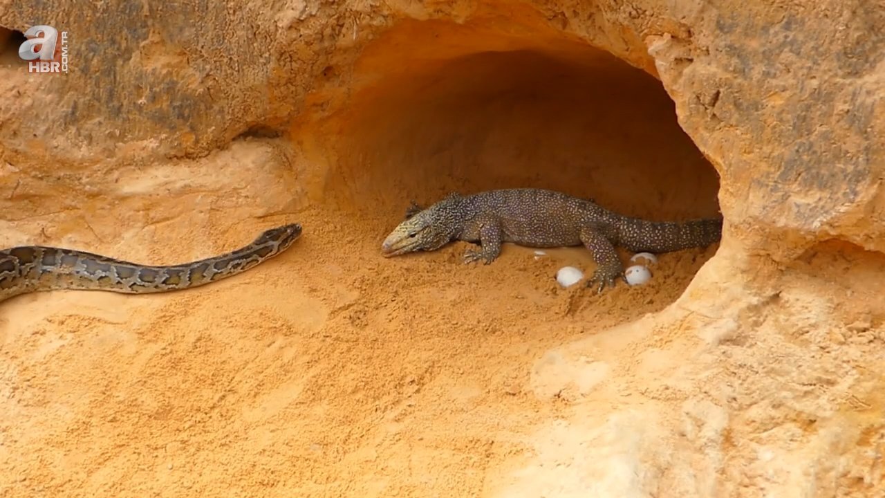 Görüntülerde, yılanın tilkiye hamle yapma anları ve kendisine saldıran yılanı başından yakalayan tilkinin verdiği zorlu mücadelede yer aldı.