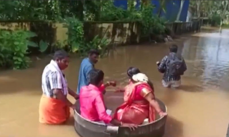 Hindistan'da bir çift selin yolları kapatmasına rağmen düğünlerini iptal etmedi. Nikaha ise çok ilginç bir yöntemle yetiştiler. İşte görenleri hayrete düşüren o anlar...