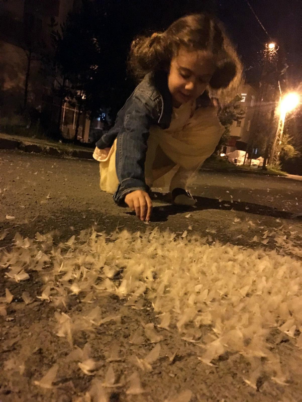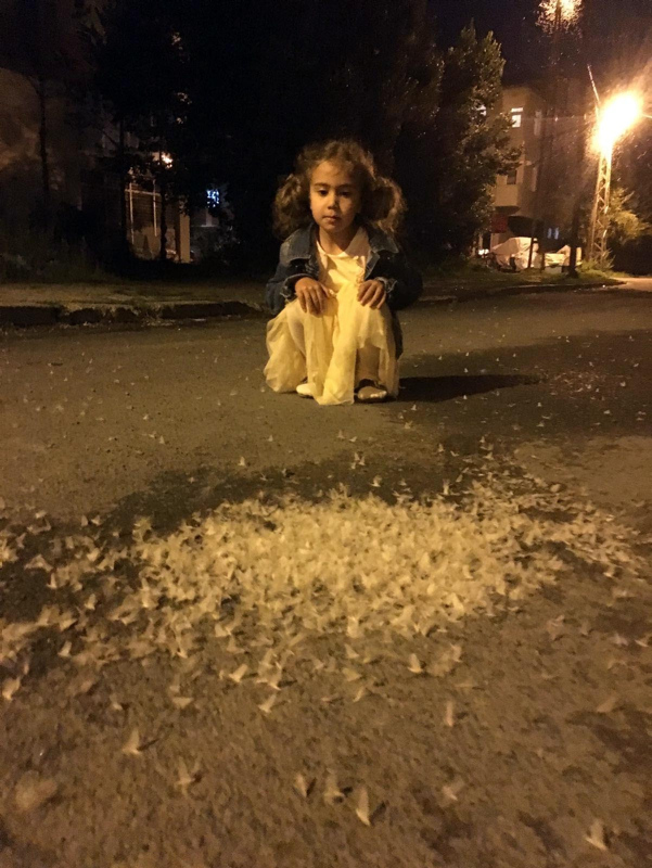 Milyonlarca kelebeğin ölüm uçuşunu büyük bir üzüntü ile izleyen çocuklar ise onları düştükleri yerden kaldırmaya çalıştı.