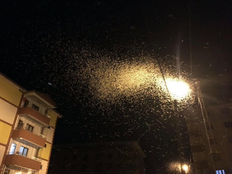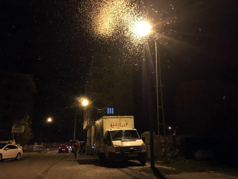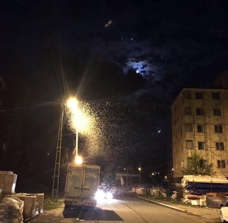 Sokak aydınlatma direklerinin ışıklarının etrafında dakikalarca uçan kelebekler, vatandaşların tabiriyle ölüm danslarını yapmaya başladı.
