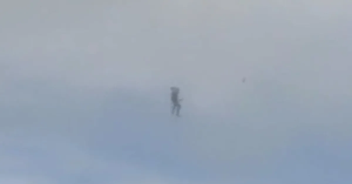 John Bream adlı esli paraşütçü, İngiltere'de helikopterle 40 metreden atlama rekorunu kırmaya çalışırken, ölümden döndü.