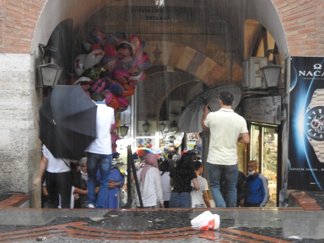 Akşam saatlerinde fırtınanın ardından başlayan sağanak yağış 15 dakika sürdü. Yağmura hazırlıksız yakalanan vatandaşlar zor anlar yaşadı. Birçok vatandaş işyerlerinin içine girerek yağmurdan korunmaya çalıştı. Yağmura hazırlıksız yakalanan vatandaşlar tarihi çarşılara sığınırken, kimisi çareyi şal, kimisi ise şemsiye satın almakta buldu.