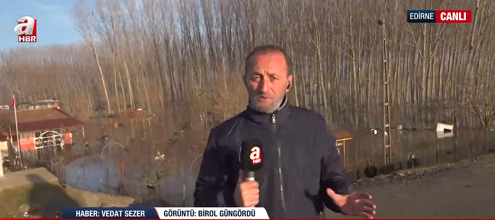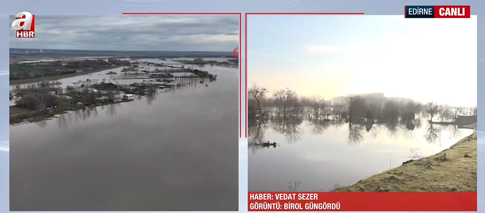 Nehirlerdeki su seviyesinin kritik eşiği aştığına dikkat çeken A Haber muhabiri Vedat Sezer, "Edirne'de alarmın rengi turuncu, tehlike ve risk devam ediyor. Şu an hava açık olsa da önümüzdeki saatlerde Bulgaristan tarafında beklenen yoğun yağış ve kar yağışı, doluluk oranı yüzde 100'e ulaşan baraj kapaklarının yeniden açılmasına neden olabilir" ifadelerini kullandı. Sezer, Meriç ve Tunca nehirlerinde turuncu alarm durumunun sürdüğünü belirterek debilerin her an daha da yükselebileceği uyarısında bulundu.