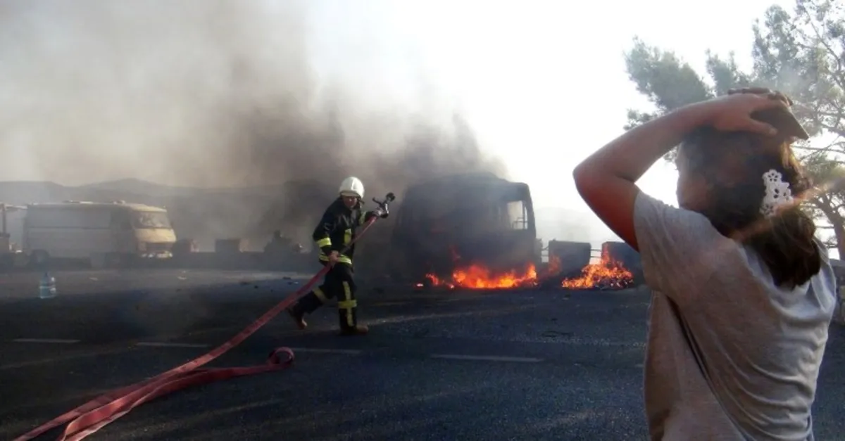 Son dakika haberi: Muğla'da Gökova Sakartepe rampasında park halinde bulunan ve yiyecek-içecek satışı yapan minibüs çıkan yangında tamamen yanarak kullanılmaz hale geldi. Küle dönen aracın seyir tepesinde duran araçlara yiyecek-içecek satışı yapan Cumhur Sarı'ya ait olduğu tespit edildi. Sarı, ekmek teknesinin alevler içinde kaldığı o anları ise gözyaşları içerisinde izledi.