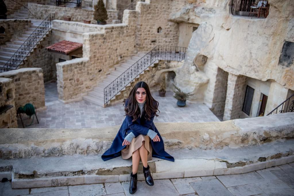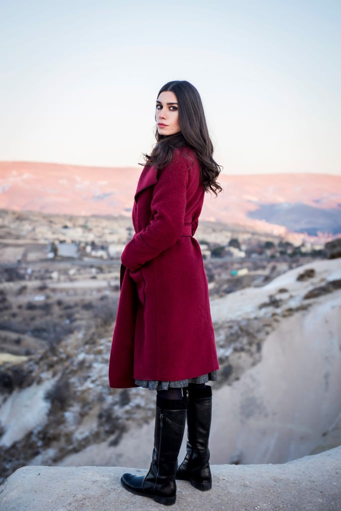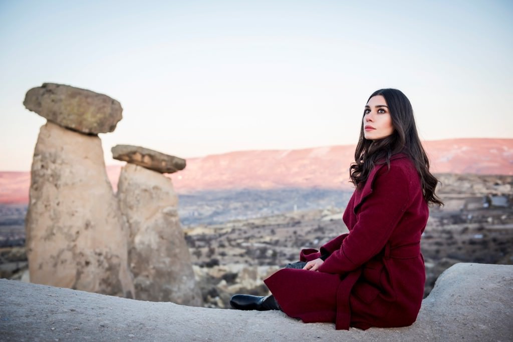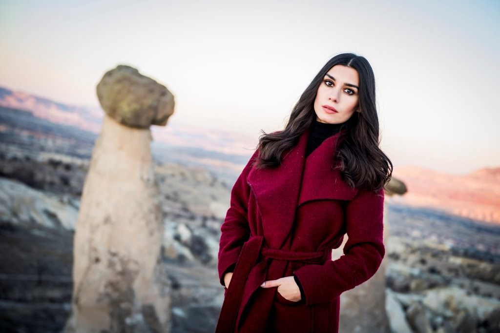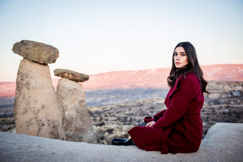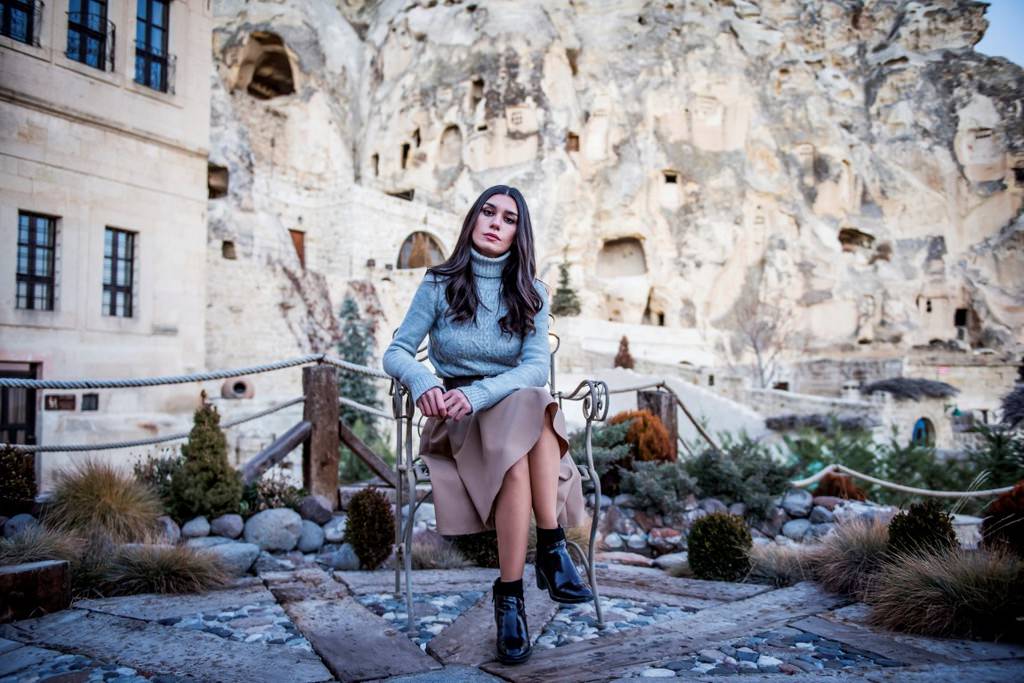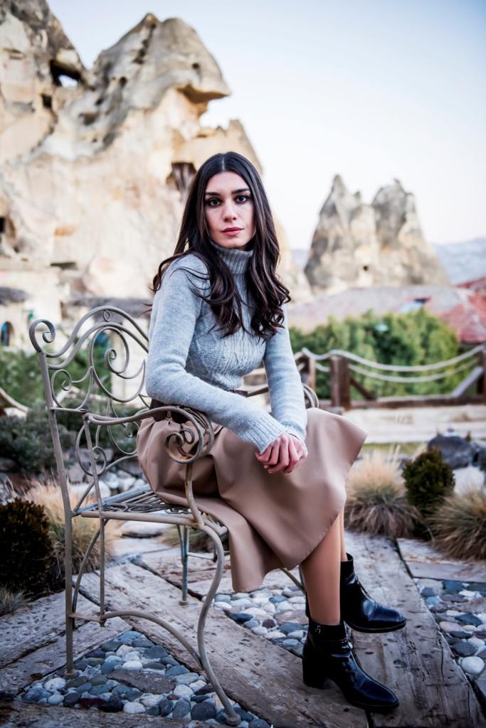 Atladık arabaya, önceden belirlediğimiz yerlerde fotoğraf çekimlerine başladık. Müthiş bir gün batımı eşliğinde fotoğraflarını çektik. Ardından Yunak Otel'de aldık soluğu. Bölgenin dokusunu en iyi yansıtan yerlerden biriydi burası ve çekimlerimize burada devam ettik. Burcu Kıratlı fotoğraf çekimleri boyunca son derece neşeliydi... Hatta Kapadokya'da gün batımının keyfini ilk kez yaşadığını anlattı... Çekimler nedeniyle bu güzel coğrafyanın tadını çıkaramadığından söz etti... Biz işimizi bitirmenin rahatlığındaydık ama Burcu Kıratlı'nın daha sette işi bitmemişti... Onu tekrar ekibin yanına götürdük. Tekrar buluşmamız için aradan beş saat geçmesi gerekti. Biz bu arada yemek yedik, dinlendik. Ama onun böyle bir fırsatı olmadı. 12 saat süren çekiminin ardından, yine tüm güler yüzüyle karşımızdaydı... Ve sorularımızı yanıtladı: