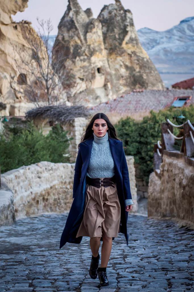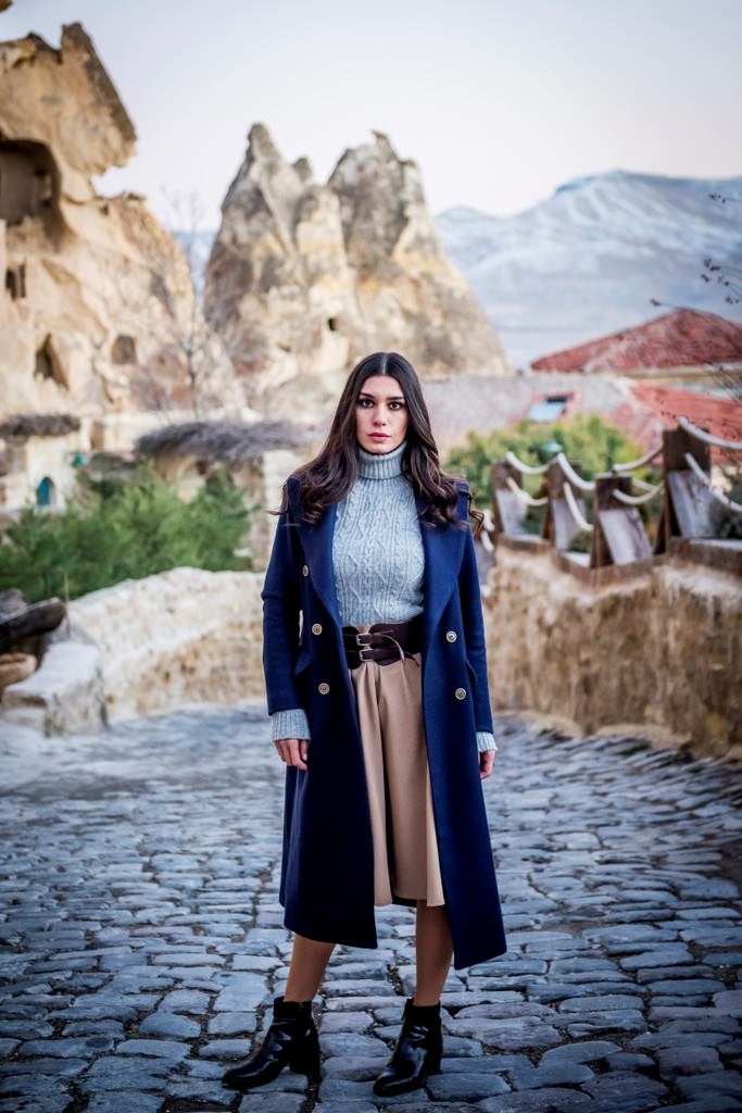 Kendisinin aşk hakkındaki duyguları da Mavi'ninki gibi dalgalı Karlar peri bacalarının üzerini bir tül gibi sarmış... Kapadokya her zamankinden daha güzel... Hava eksi dereceleri gösteriyor ama Kapadokya'nın ruhu sıcacık. Esnafın yüzü gülüyor, Aşk ve Mavi dizisi onlara ilaç gibi gelmiş, işlerin açıldığından söz ediyorlar. Anlaşılan ekip, oyuncular, dizinin fanları Kapadokya'ya kışı unutturmuş. Bir dizi sayesinde, bu karanlık günlerde Kapadokya'ya ışık doğmuş. Emrah'ı 10 yıl sonra ekrana döndüren proje, hem ona, hem de bölgeye taze bir ruh katmış... Kapadokya'da Emrah'ın partneri Burcu Kıratlı'yla buluşacağız. Genç oyuncu bu dizi ve Emrah'la partnerliğiyle gündeme oturdu... Dizideki aşk ve nefret ilişkisi herkesin yüreğine dokundu. Biz de bu kara kaşlı, kara gözlü güzeli yakından tanımak için sete konuk olduk.