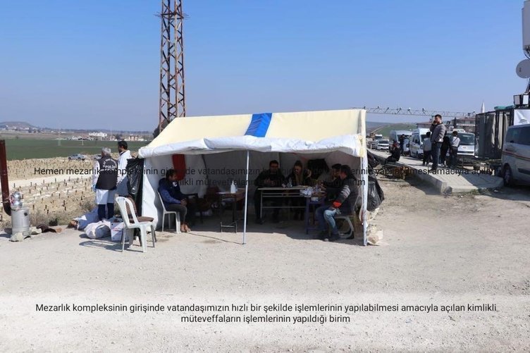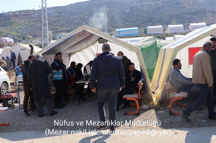 Kahramanmaraş merkezli depremlerde en çok yıkımı yaşayan Hatay'da kimlikleri belirlenemeyen cenazelerin Narlıca'da oluşturulan 'Acil DNA merkezinde' kimlikleri belirleniyor. Cumhuriyet Başsavcılıkları tarafından koordine edilen Hatay Narlıca Asri Mezarlıkta oluşturulan mezarlık kompleksinde vatandaşların işlemlerinin hızlı bir şekilde yapılabilmesi amacıyla kimlikli cenazelerin işlemlerinin yapıldığı birim bulunuyor. DNA örneği alınan çadırın bulunduğu komplekste kimliği belirlenemeyen cenazelerin kimlik tespiti ve defin işlemleri savcılık birimleri tarafından gerçekleştiriliyor.