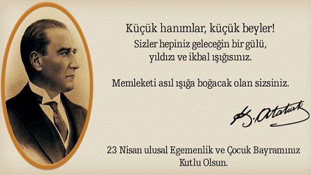 Çocuklara armağan edilen tek bayram olma özelliğini taşıyan 23 Nisan, Türkiye Cumhuriyeti'nin onların omuzlarında yükseleceğine olan inancın ifadesidir. Ulusal Egemenlik ve Çocuk Bayramımız kutlu olsun