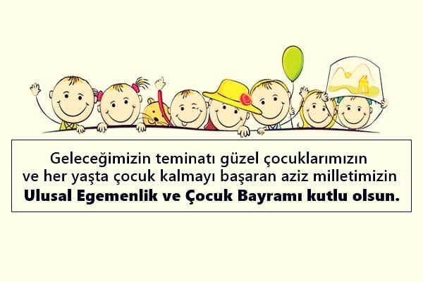 Sevgili çocuklar; biliniz ki bayrağını, vatanını, milletini, ailesini ve arkadaşlarını seven çocukları, mutlu bir gelecek, bilimde, teknolojide çağı yakalamış, hatta çağın üstüne çıkmış bir Türkiye beklemektedir. Bayramınız kutlu olsun.