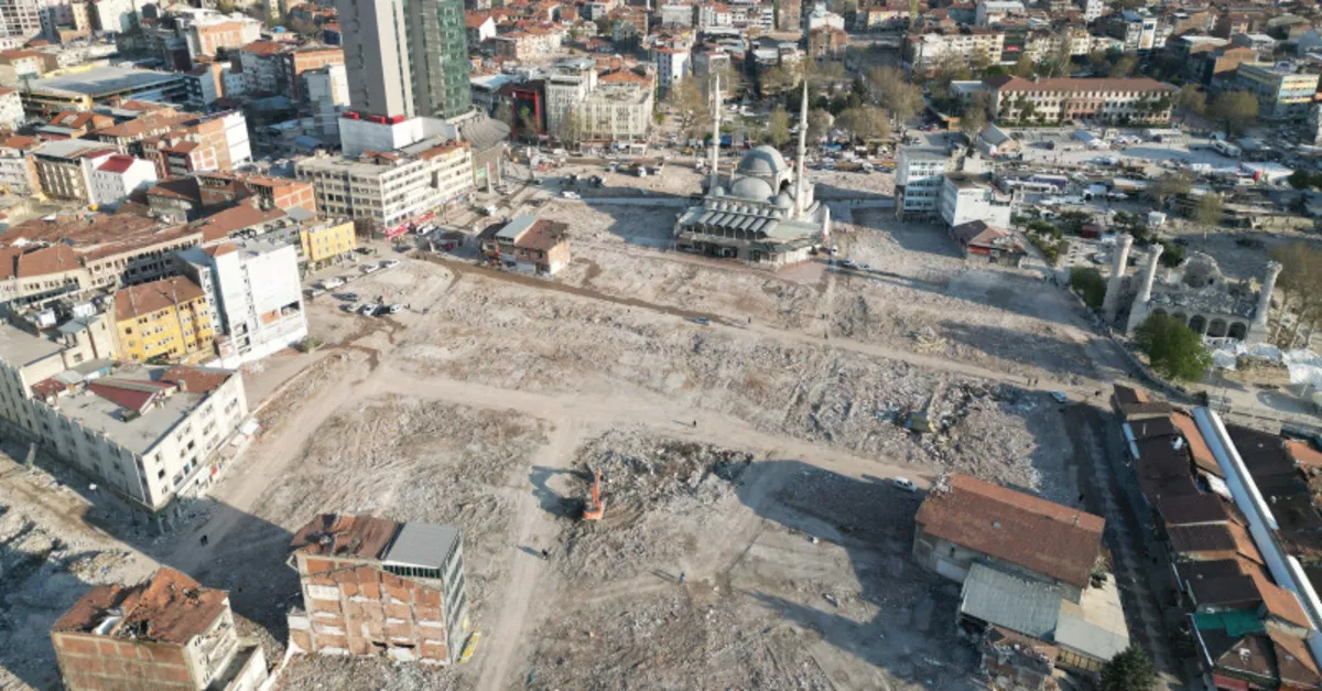 Kent merkezindeki binaların yıkılması ile de dev tarlalara dönüşen şehir merkezinin hali ise dron ile görüntülendi.
