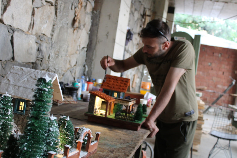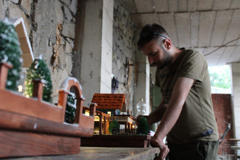 Doğadaki malzemelerin yanı sıra maketlerinde; atık plastik, demir parçalardan ağaçlar, tarlalar, kapılar inşa ediyor.