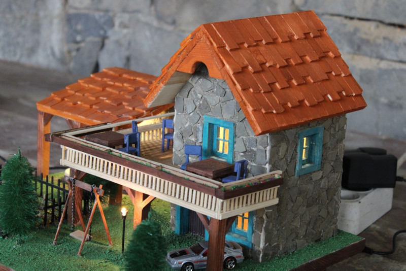Uzundere'de yaşayan Lokman Kalaycı (30); doğada bulunan taş, yosun, kuru dal parçaları, ağaç kabuğu gibi malzemeleri toplayıp maket evler yapıyor.