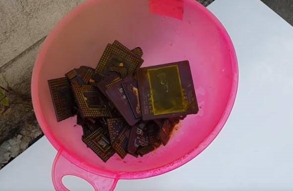 Gördüğünüz bu eski bilgisayar parçaları, yani anakart ve özellikle de işlemci aslında içinde altın barındırıyor.