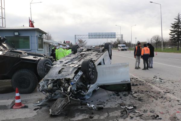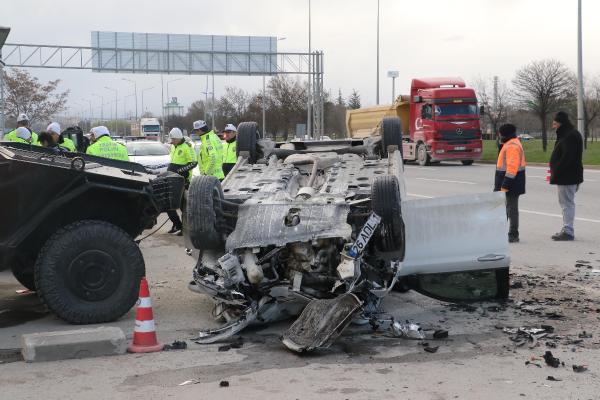 Feci kaza Eskişehir'de meydana geldi. Çevre yolunda sürücüsünün kontrolünü yitirdiği otomobil, trafik uygulama noktasına daldı. Polis araçlarına çarparak ters dönen otomobilin sürücüsü ile 5 polis memuru yaralandı.