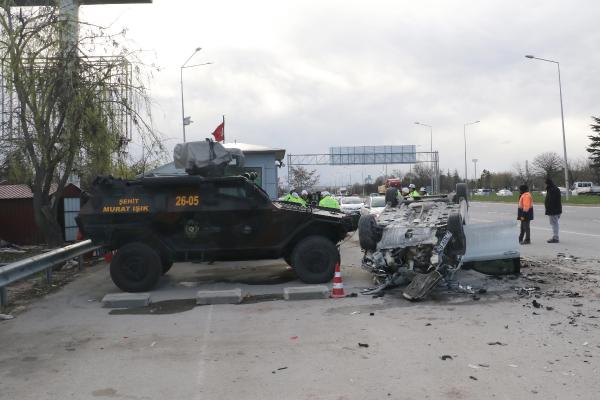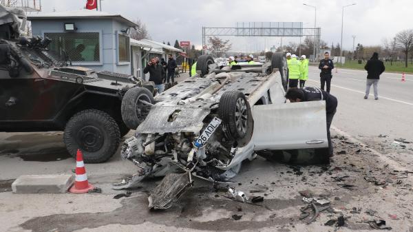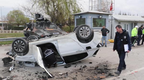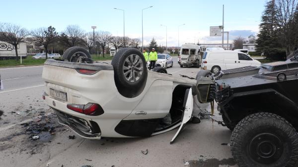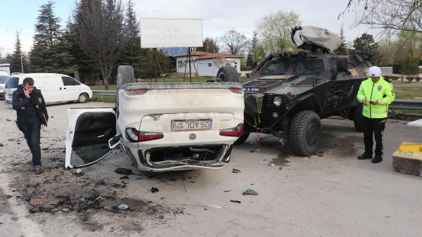 Park halindeki bir araç ile uygulama noktasında değişim yapan Özel Harekat Şube Müdürlüğü'ne ait ekip aracına çarpan otomobil, ters döndü.