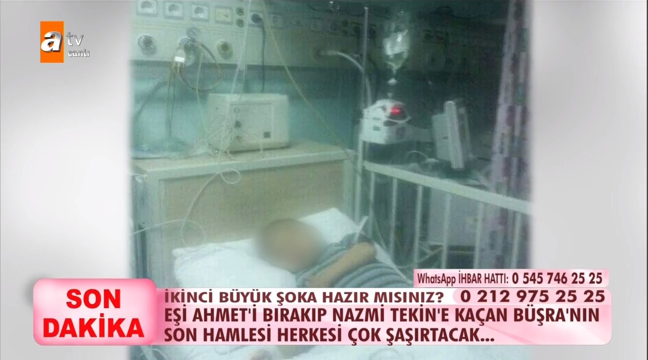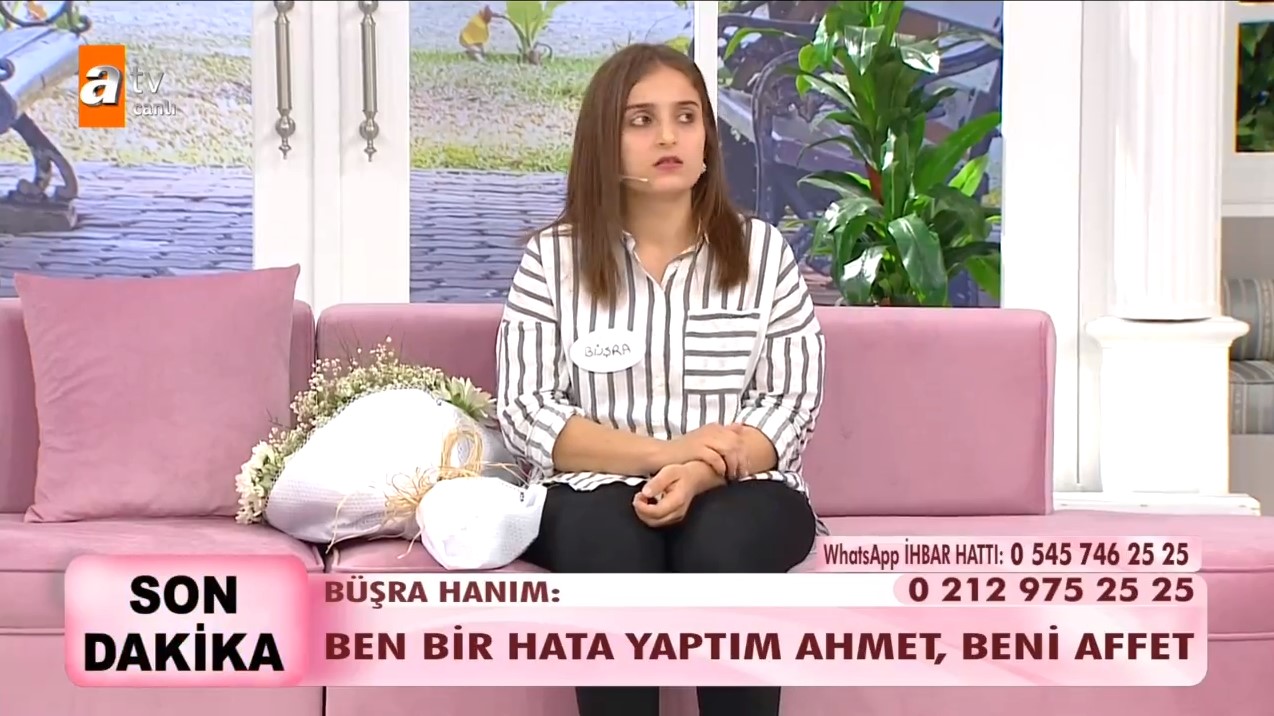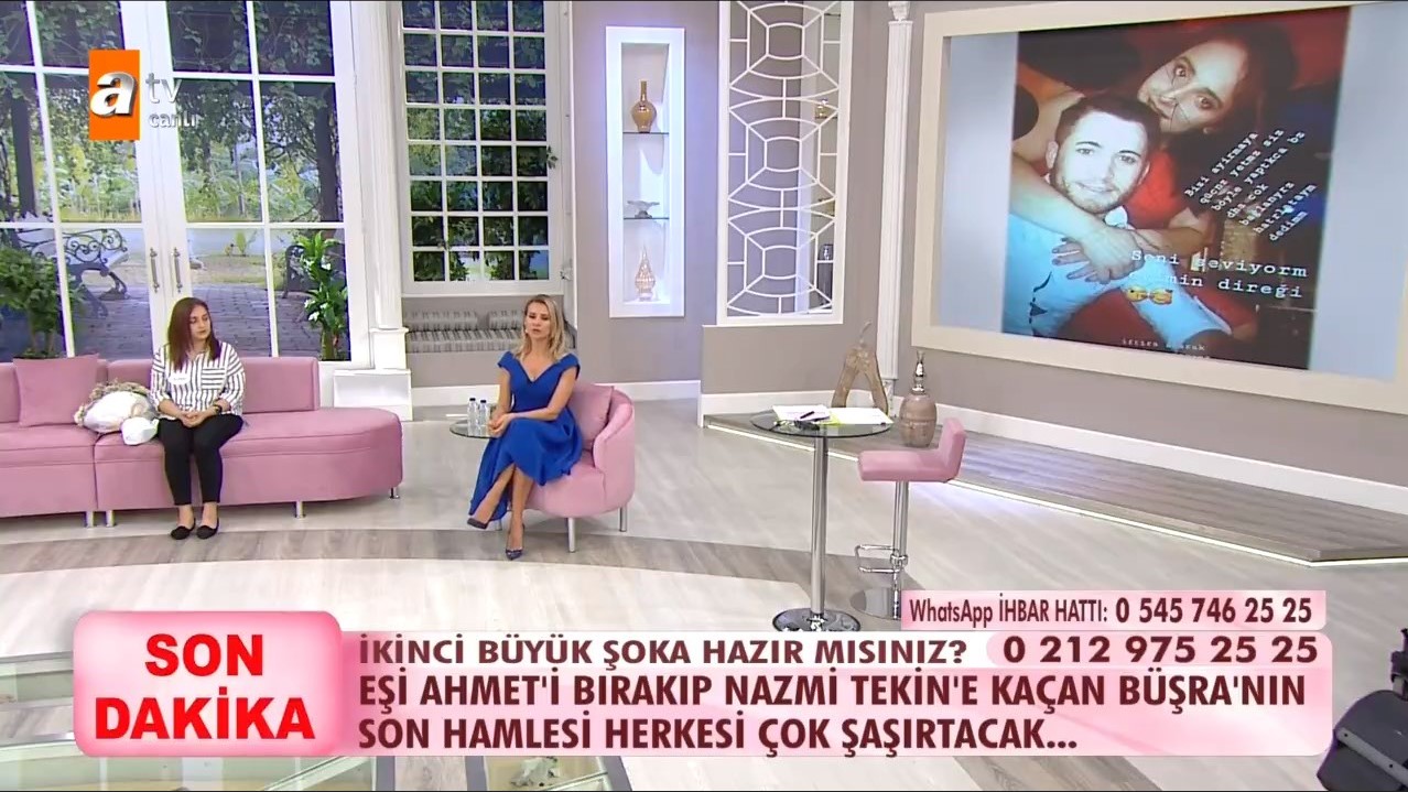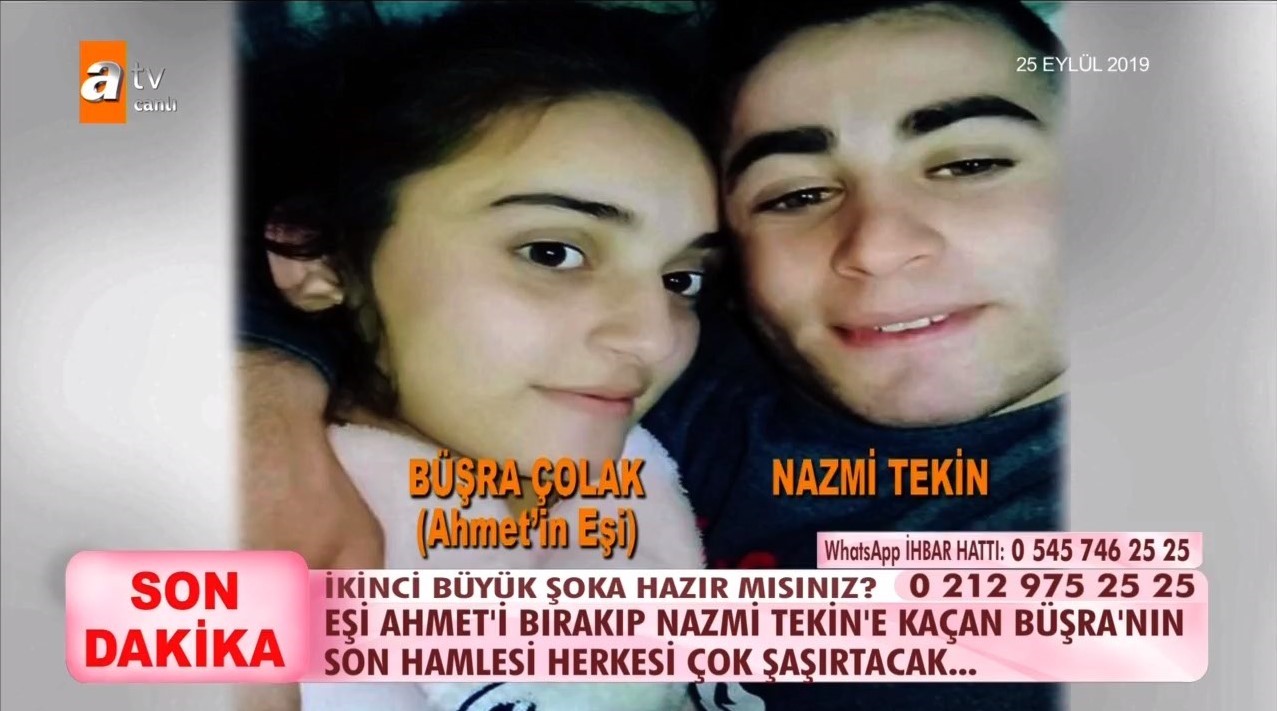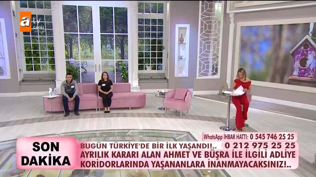 9 ay önce eşini ve biri hasta iki çocuğunu bırakıp Nazmi Tekin'e kaçan Büşra, canlı yayında eşi Ahmet ile ilk kez karşı karşıya gelmişti.