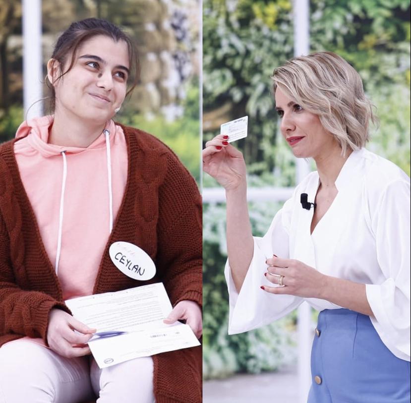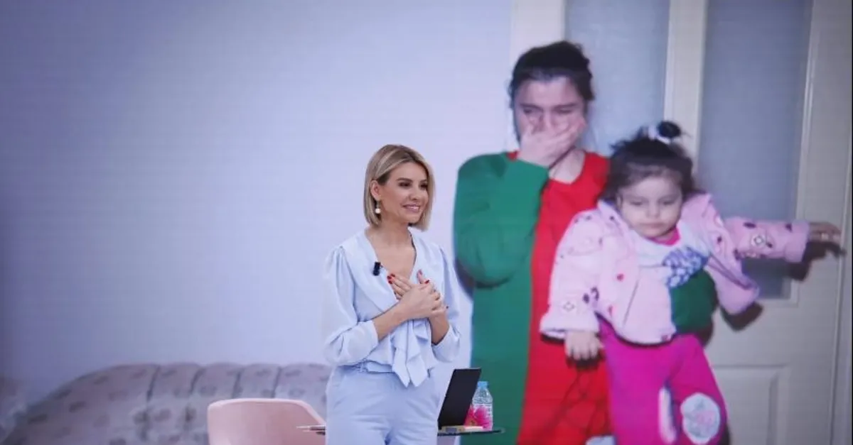 Esra Erol, Ceylan'ın elinden tutarak yüzünü güldürdü. 18 yaşından beri kadın sığınma evinde yaşayan ve 1,5 yaşındaki çocuğuyla hayat mücadelesi veren Ceylan'a canlı yayında kızının kimliğini hediye etti.
