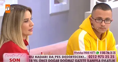 Esra Erol'da programında ilginç bir olay daha karşımıza çıktı. Tam 18 yıl önce bir aile çocuğunu gazete ilanıyla sattı. Yıllar sonra gerçekleri öğrenen genç çocuk Esra Erol'da'ya başvurdu. 18 yaşındaki Doğan Öztürk, öz ailesini arıyor. ATV'nin sevilen programı Esra Erol'da genç Doğan'ın öz ailesinin peşine düştü.
