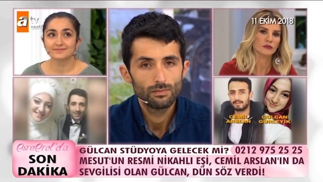 ATV'de ekrana gelen Esra Erol'un programına damga vuran Gülcan Gürleyik olayı çözüldü. Eşi Mesut Gürleyik'i terk edip yasak aşkı Cemil Arslan'la kaçan, ardından da Davut diye bir sevgilisi olduğu öğrenilen Gülcan'ın 3 aylık çocuğunun kimden olduğu ortaya çıktı.