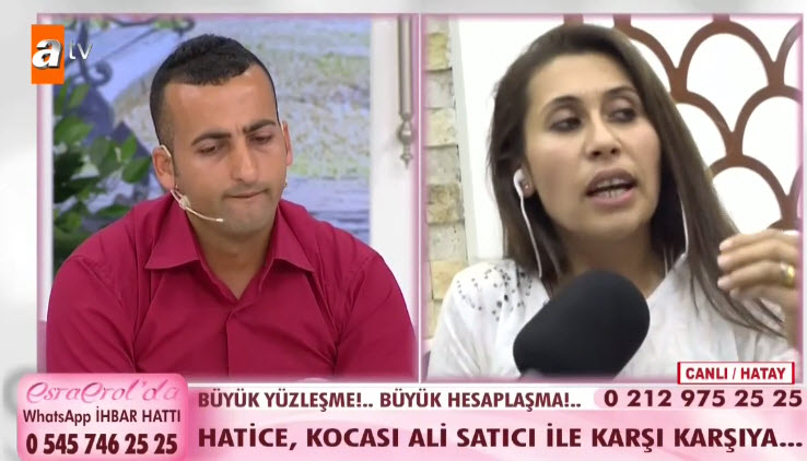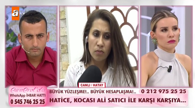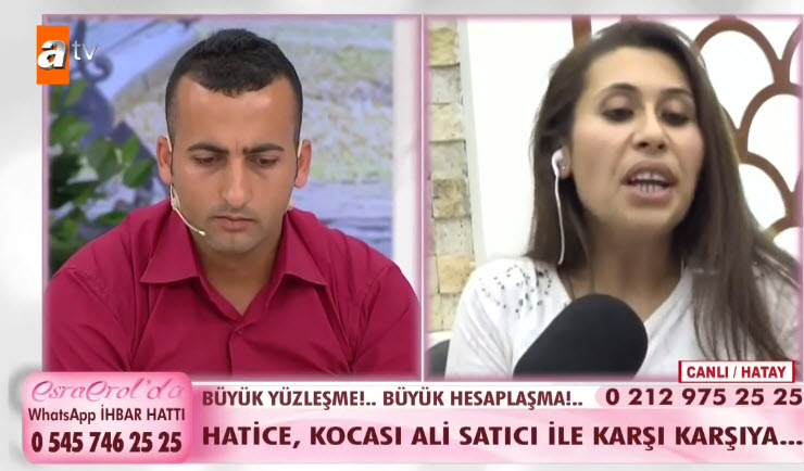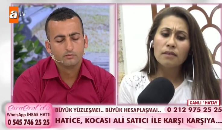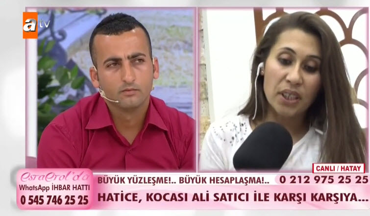 Esra Erol'da programının canlı yayın konuğu olan Hatice, stüdyodaki eşi Ali Satıcı ile karşı karşıya geldi. Esra Erol'un sorularını yanıtlayan Hatice, annesinin kendisine "boşan ve hayatına bak" dediğini dile getirdi.
