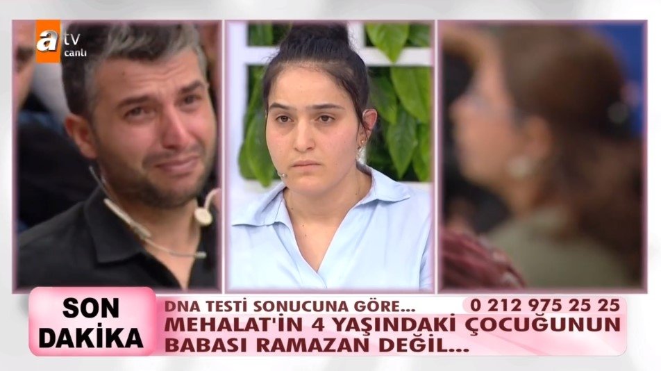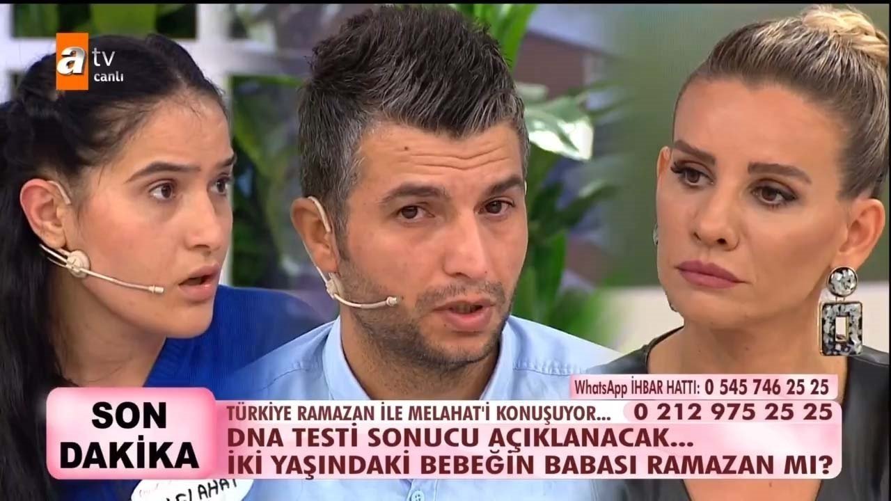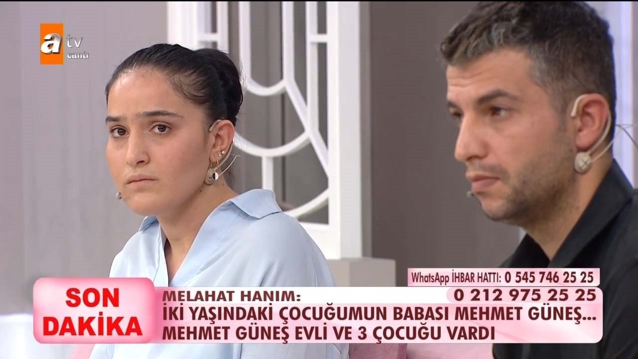 Esra Erol'da Türkiye'nin gündemine oturan Melahat B. olayında bir skandal daha yaşandı. Esra Erol'a eşim banyo yapmıyor diye boşanmak istediğini söyleyen Melahat B. hakkındaki gerçekler izleyenleri şoke etti. ATV ekranlarında yayınlanan Esra Erol'da bir gerçek daha gün yüzüne çıktı. İzleyenleri hayrete düşüren 6 yıllık evli ve 2 çocuk Melahat B., eşini aldattığı geçtiğimiz haftalarda Esra Erol'da ortaya çıkmıştı. Aldatma olayının ardından DNA testi isteyen eşi Ramazan, 2 çocuğun da kendisinden olmadığını öğrenerek büyük bir şok yaşamıştı. Bu gerçekler karşısında büyük üzüntü yaşayan Ramazan, Melahat B. ile tek celsede boşandı. İlk çocuğunun Celal isimli birinden ikinci çocuğunun da Mehmet Muhammet Güneş isimli birinden olduğunu iddia eden Melahat, bugün bir kez daha Esra Erol'da canlı yayınına katıldı. İkinci çocuğuna tekrardan DNA testi yapılan Melahat B.'nin iddia ettiği gibi oğlunun babası Mehmet Muhammet Güneş mi? İşte Türkiye'nin merakla beklediği o DNA testi sonucu...