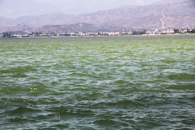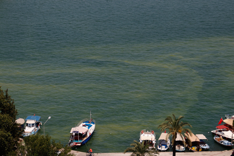 Fethiye'de özellikle Çalış Plajı ve kordon boyunca deniz suyunun rengi sarı ve yeşile büründü.