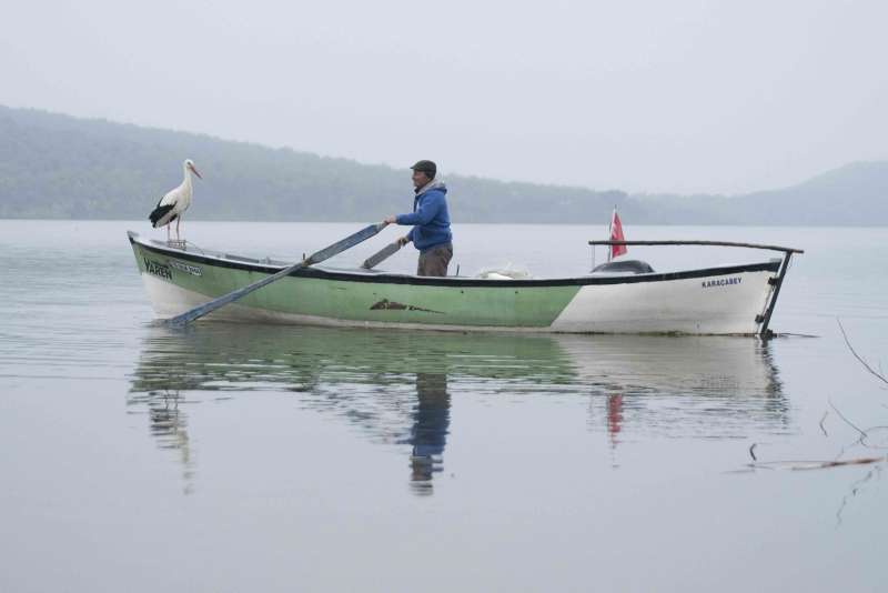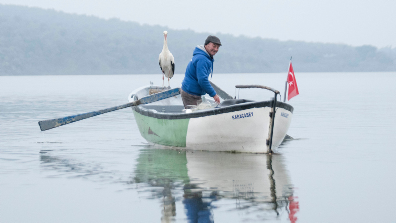 Türkiye'yi Avrupa Leylek Köyleri ağında temsil eden tek köy olan Bursa'nın Karacabey ilçesine bağlı Eskikaraağaç Leylek Köyü'nde yaşanan balıkçı ile leyleğin dostluğu, milyonlar tarafından ilgiyle takip edilen hikayeye dönüştü. Geçen 10 yılda her göç zamanı geldiği köyde, Adem Yılmaz'ın kayığına konan 'Yaren', bu yıl 11'inci kez geldi. Yaren Leylek'in 11'inci kez gelişi, köylüler tarafından sevinçle karşılandı. Dün leylek köyüne gelen Yaren leylek için ağlarını göle atan balıkçı Adem Yılmaz, bu sabah Yaren leylekle kayığında yılın ilk buluşmasını gerçekleştirdi. O anlar ise Doğa Fotoğrafçısı Alper Tüydeş tarafından fotoğraflandı.