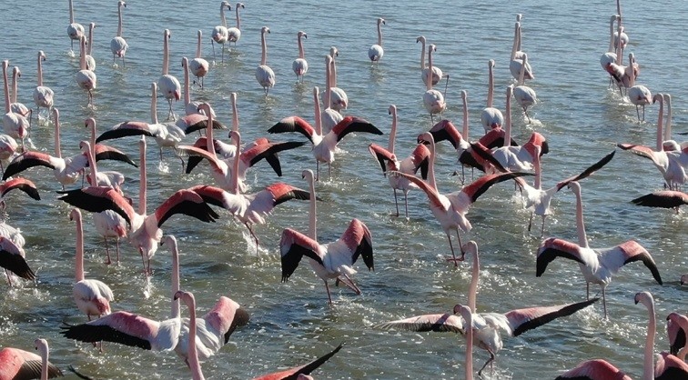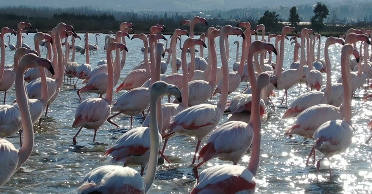 Geçtiğimiz seneye kıyasla sayıları 2 katına çıkan flamingoların, uğruna Osmangazi Köprüsüne eğim verdiren,' kuş oteli' olarak da tanınan Hersek Lagünü'nde yaptığı dansları görmek için yurt dışından bile görmeye geliyorlar.