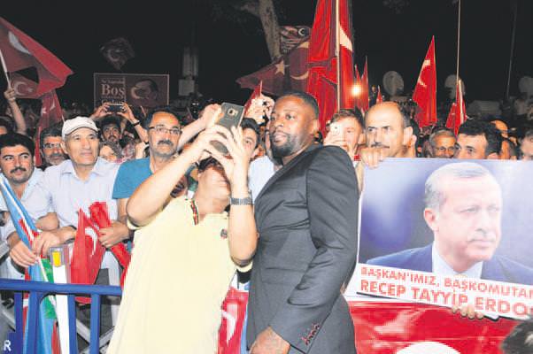 Beşiktaş'ın eski Fransız asıllı efsane futbolcusu Pascal Nouma'nın da aralarında bulunduğu ünlü isimler meydanları dolduran vatandaşlarla birlikte 'Darbeye hayır!' sloganları attı.