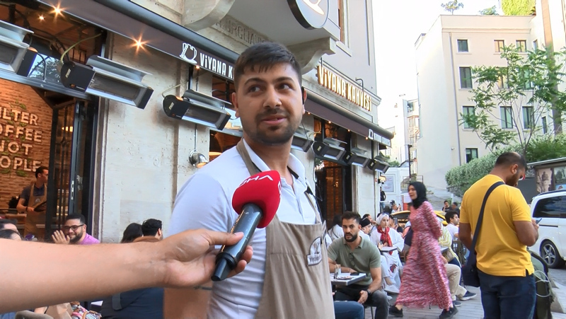 Görenleri şoke olduğu olayda yanan gence çevredeki esnaf yangın söndürme tüpüyle müdahale etti.