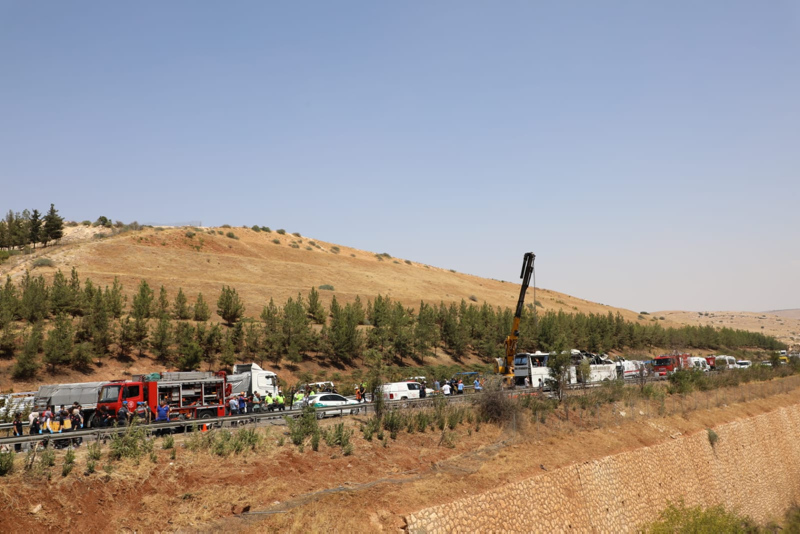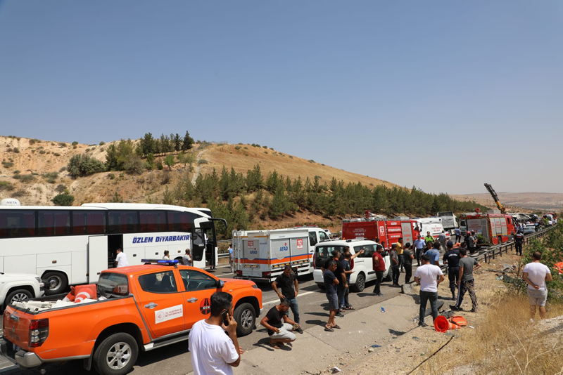 Alınan bilgiye göre, Tarsus-Adana-Gaziantep (TAG) Otoyolu'nun Nizip bölümünde kaza yapan bir araca müdahale eden ekiplere ve İhlas Haber Ajansının (İHA) canlı yayın aracına, kaza yerinden yaklaşık 200 metre geride devrilen ve kayan Özel Diyarbakır Seyahat'e ait 33 SR 157 plakalı yolcu otobüsü çarptı.