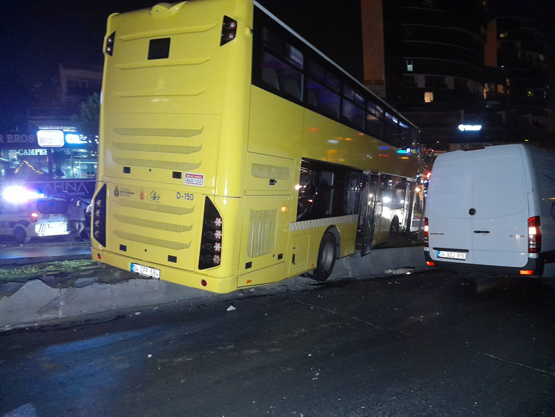 Gece yarısı faciadan dönüldü! Çift katlı İETT otobüsü askıda kaldı