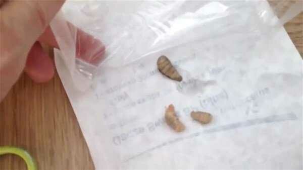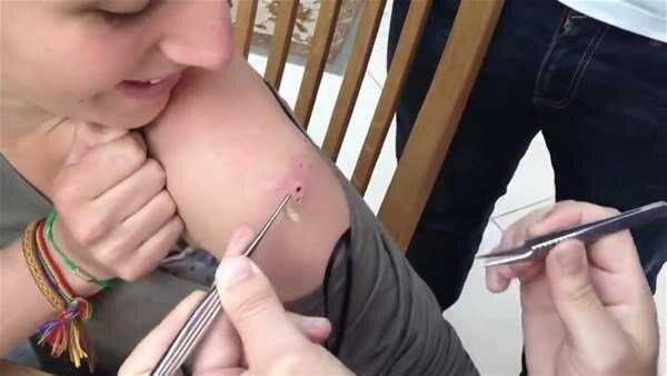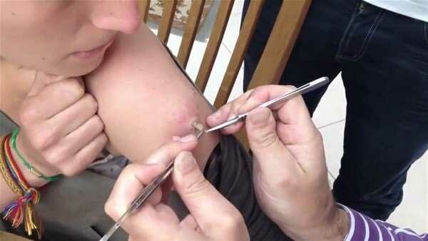 Yaranın içinden çıkan tropikal bölgede yaşayan ve larvalarını deri altına bırakan botfly cinsi sinekti.