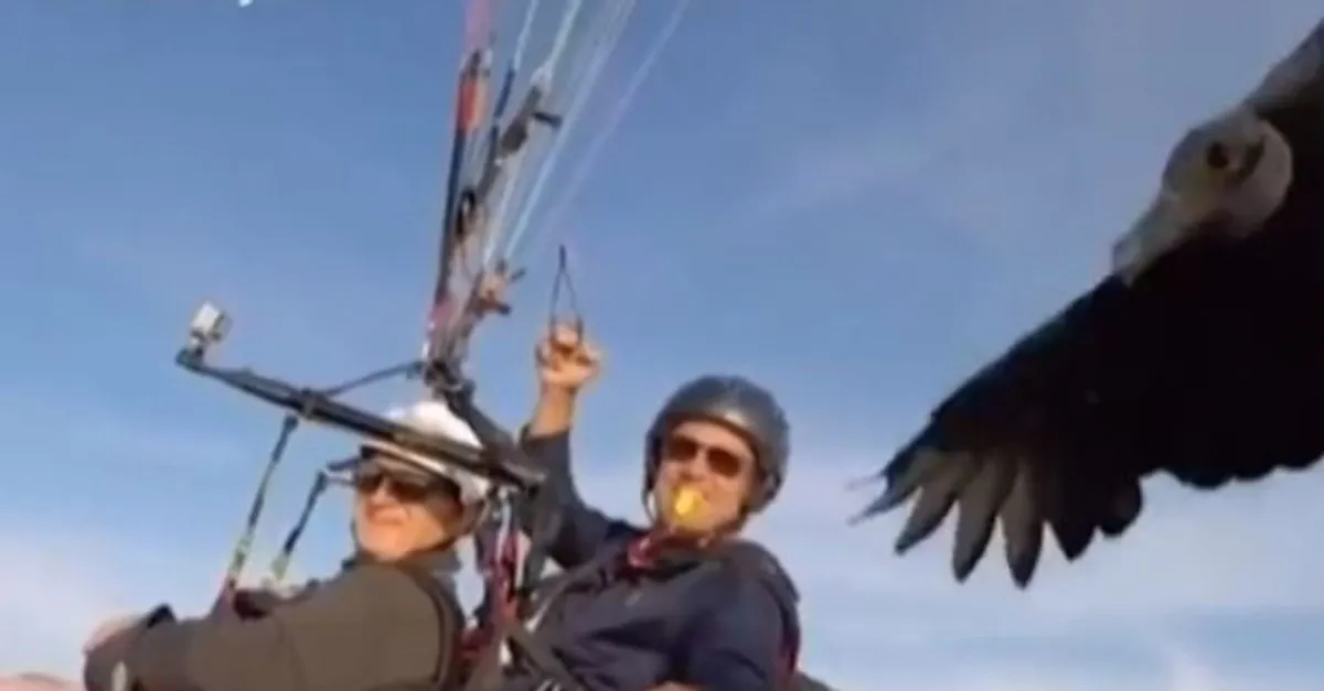 Gökyüzünde ilginç anlar kamerada! Paraşütüyle uçarken akbaba...