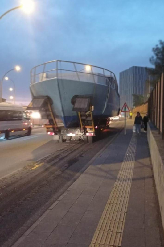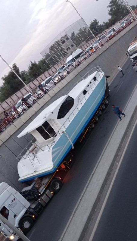 TIR dorsesi üzerinde Antalya'ya gönderilen tekne, şoförün yüksekliği ayarlayamaması sonucu köprüye sıkıştı.