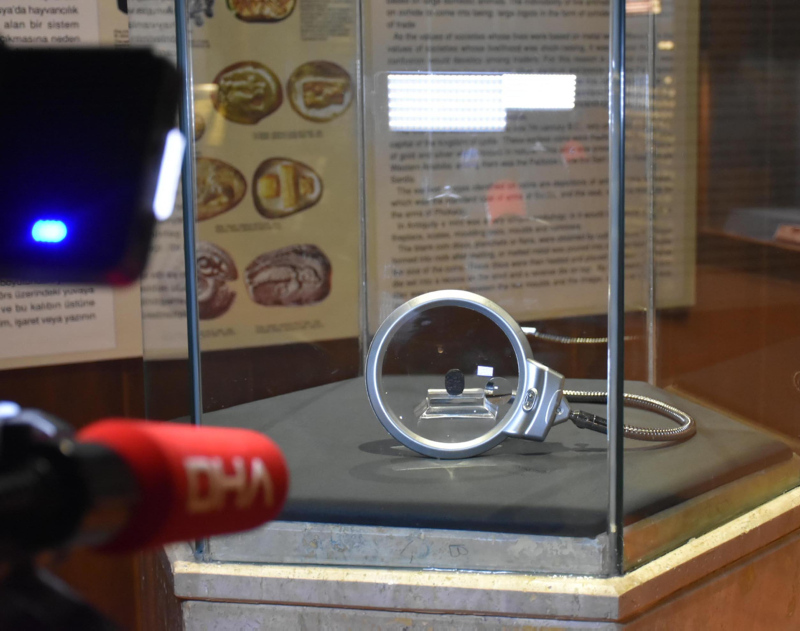 İzmir'de ziyarete sunulan 2 bin 800 yıllık mühür, Menderes'in Ahmetbeyli Mahallesi'ndeki Klaros Antik Kenti'nde, 2009 yılında bulundu. Mühür, İzmir Arkeoloji Müzesi'nde sergileniyor.