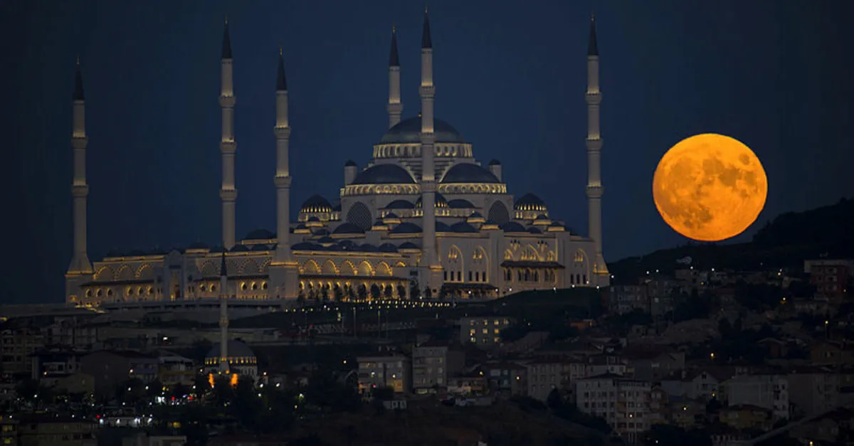 İstanbul'da dolunay Çamlıca Camii ile güzel görüntü oluşturdu