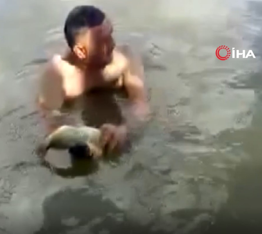 Görenlerin ağzı açık kaldı! Oltasız balık tutmaya küçük yaşta başladı
